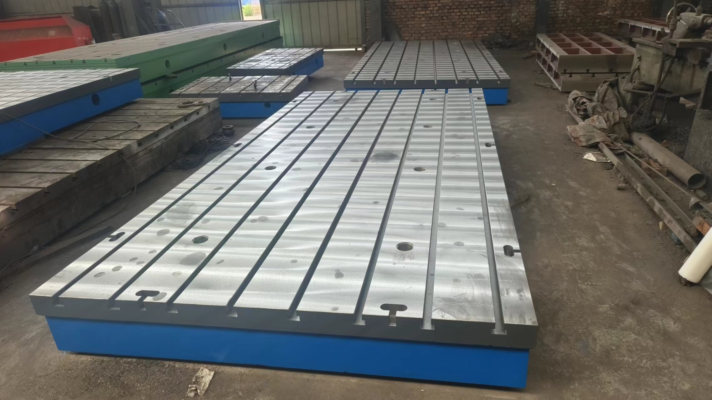 工作面采用的機床粗加工后數控機床精加工,也可通過刮研工藝,用涂色的方法進行檢驗,保證了平面的精度。工作面一般有T型槽,也可以根據要求加工長孔和圓孔,這種平臺采用的是優質純鐵鑄造而成的。廣泛應用在動力機械設備的裝配、調試、焊接、鉚焊,這種產品表面帶有T形槽,可以固定機械設備。